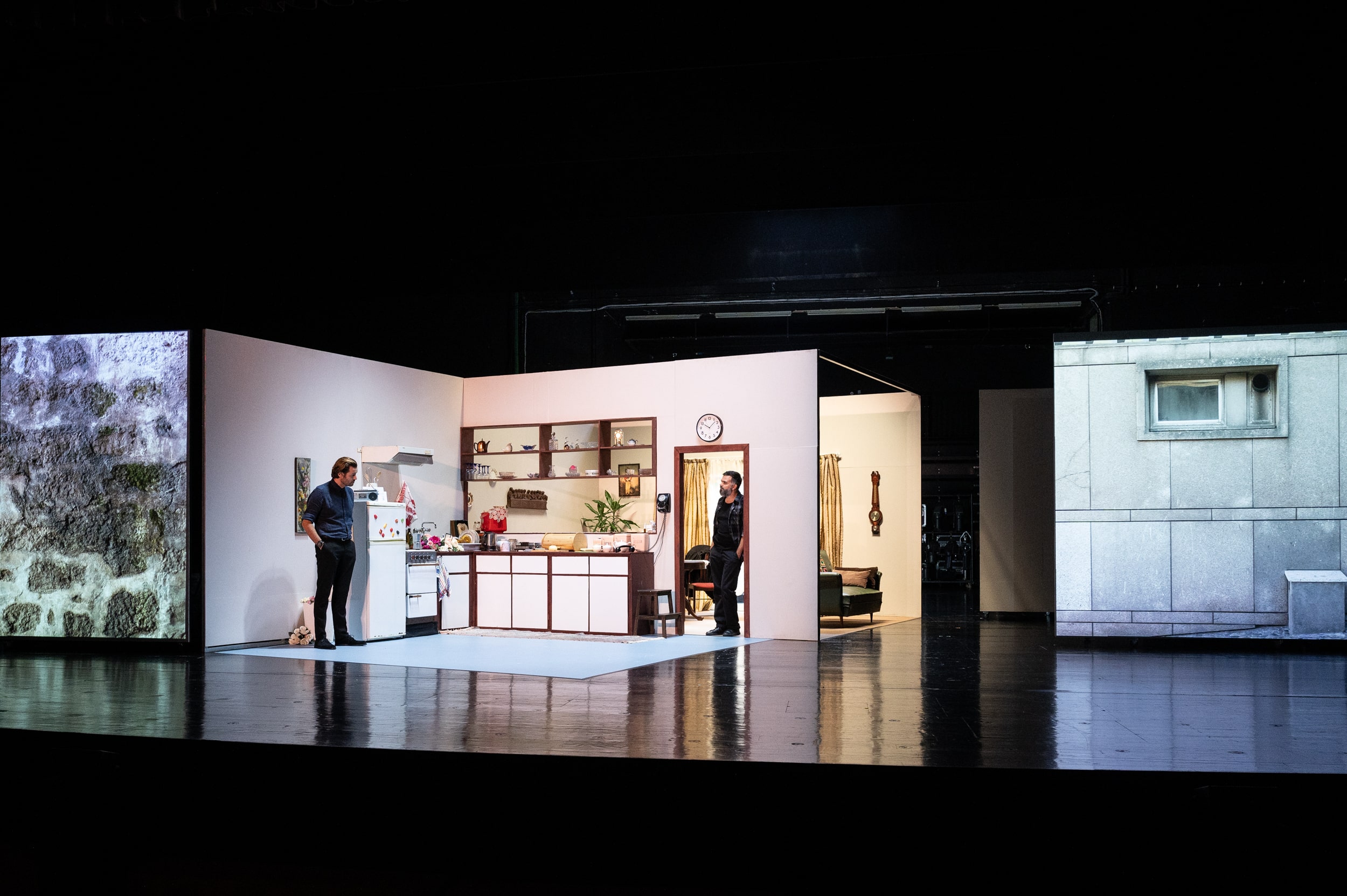 In theater, everything is on display, there is nothing between the spectator and the performance, he is responsible for framing and selecting the information that interests him, thus becoming an unequivocal part of the final work. Cinema and its mechanisms create layers and make this pre-selection by the viewer. What does not enter the field of the camera does not exist in the domain of created fiction. In this parents' house we use the theater as the space of memory and cinema as the space of fiction: three brothers return home for a funeral and are forced to interrogate the ordinary, the banal, the hitherto obvious. But maybe they won't question, maybe the obvious isn't that clear, maybe they won't even come back. — A Turma
