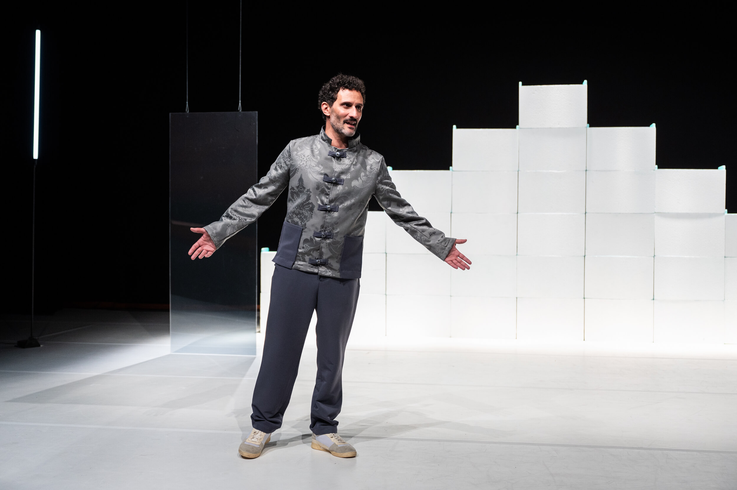 This performance covers a fictional biography of an actor who, twenty years into his career, is simply tired of knowing nothing but success. He is outraged by his successful past, because he feels isolated in it. He is outraged, because he always did what he wanted. This is an original text, written with contributions from several authors, anchored in theatre and film, at the threshold between truth and lie, appearance and reality. — Nuno Preto