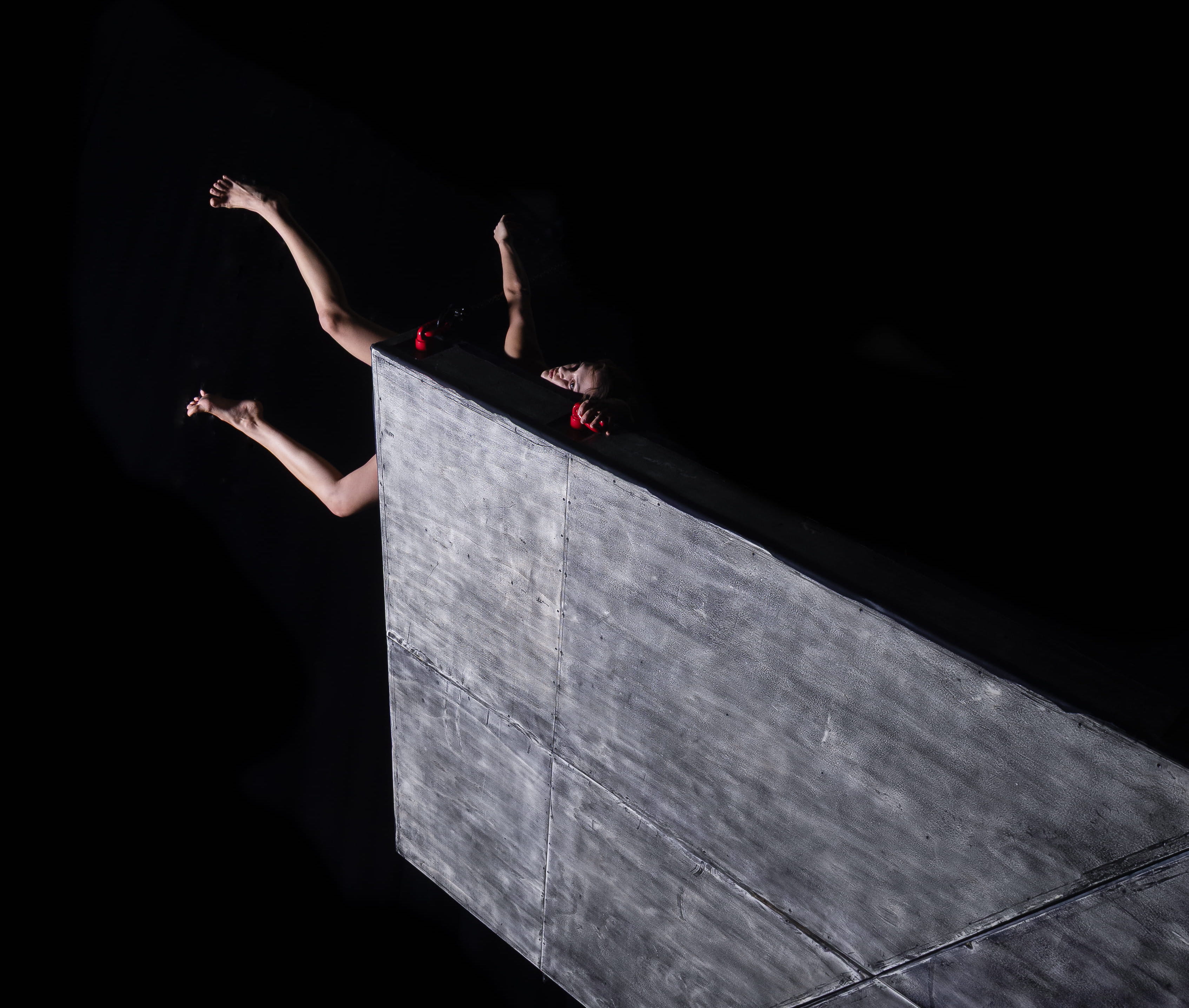 Seguimos no questionamento da norma, da sua hierarquia e da sua lógica. Esquecemo-nos do que somos e do que deveríamos ser. Suspendemo-nos num universo apocalíptico, existimos e resistimos numa perversidade quotidiana, numa espécie de delírio que celebra a crueldade e a violência, enquanto tentamos sobreviver na sádica busca por uma lógica que ultrapasse a compreensão da reconfiguração e ressignificação do corpo. Aqui, questionamos os estereótipos e desafiamos a gravidade, cruzamos o lirismo e a violência numa imagem que revela corpos em constante confronto com os seus limites e ilimites. Numa paisagem composta por ordem e caos, submissão e revolta, Hornfuckers questionam o que somos, o que nos é imposto e como o sistema que nos sustenta pode ser fonte de imprevisibilidade e opressão. — Diana Niepce